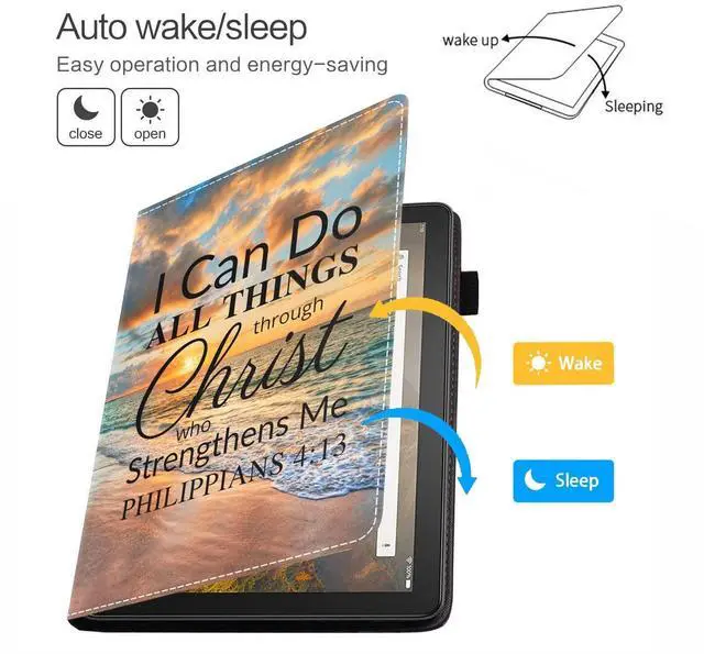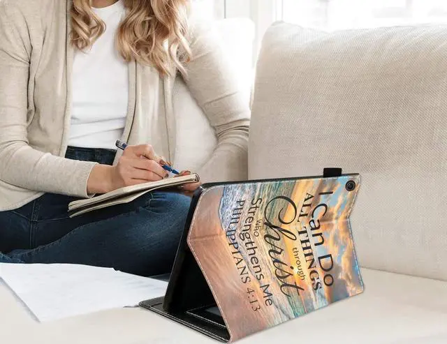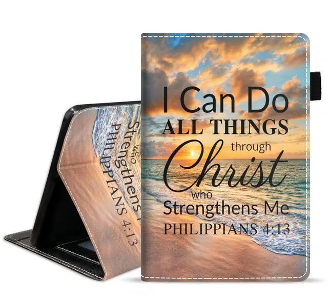DEHJYYIJUY Case for All-New Kindle Fire 7 Tablet (7 inch Display, 9th/7th Generation, 2019/2017 Release), Premium PU Leather Cover with Card Slot & Pencil Holder, Bible Verse Philippians 4-13
