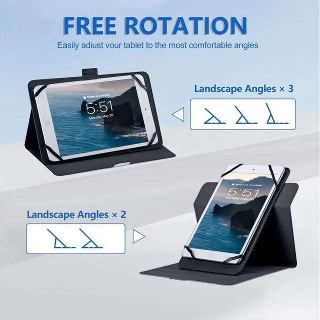 Adjustable Stand Angle Design: It has a multi-angle stand function. The innovative 360-degree stand design and multiple stand slots allow the tablet to be adjusted to different viewing angles. It is convenient for reading and watching videos. The anti-slip stripes and the elastic band can firmly hold your tablet for easy use.