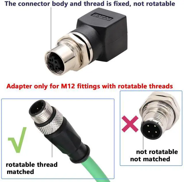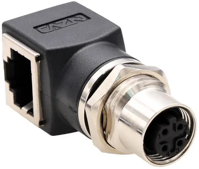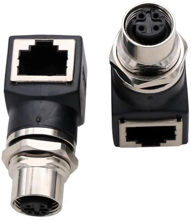 [Rugged Industrial Design] Network adapter with M12 D-coded 4-pin female socket to RJ45 jack, right-angle 90-degree, IP67 waterproof/dustproof rating, and -25C to +80C temperature resistance. The threaded lock withstands 500+ mating cycles for vibration-proof connections ^^ [Compatibility] Widely used in industrial machine control or automation systems for network communication and power electrical connections. Works with PLCs (for Omron Siemens SICK Baumer Cognex Datalogic Keyence), sensors, actuators, motors, encoders, barcode scanner reader, robots, switches, I/O link, and major protocols (DeviceNet, Profibus, IO Link, PROFINET, EtherCAT, CANopen).