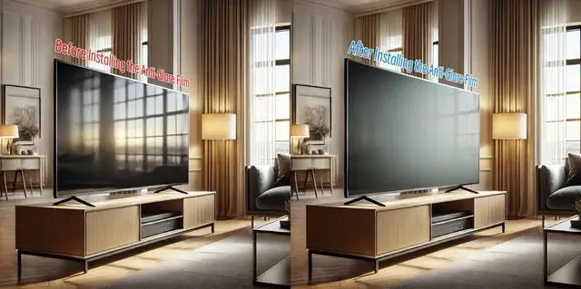 Clear Vision: This anti-glare TV screen film is designed with a matte coating that dramatically reduces indoor and outdoor TV screen reflections and glare ^^ Outdoor Glare Usage TipWhile the outdoor TV anti-glare shield performs exceptionally in reducing glare, direct sunlight on the TV screen may temporarily diminish its anti-glare function. Ensure your TV is placed under a roof or in a shaded area, after installation adjust the screen brightness to the maximum for the best results and consistent glare reduction ^^ Blue Light Filter for Eye ProtectionThis TV anti-glare screen protector features a built-in blue light filter, reducing blue light 380nm to 495nm. It helps alleviate eye strain and promotes better sleep, Suitable for prolonged TV viewing ^^ TV Matte Film for ProtectionIn addition to reducing glare, the matte finish provides a protective layer to the TV screen against scratches, fingerprints and everyday wear and tear, keeping the TV screen clean and ensuring it stays in good condition.