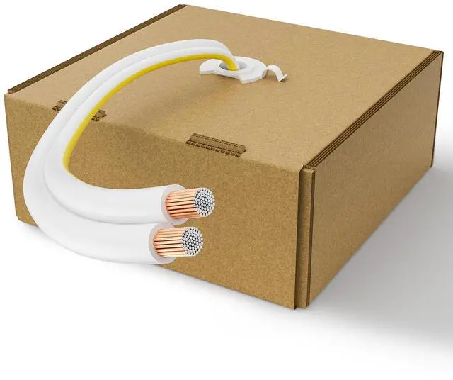 Copper Clad Aluminum (CCA) Speaker WireUsing 16 Gauge CCA conductors to build excellent signal transmission. Equipped with soft white jacket and a yellow polarity mark, making it look beautiful and coordinated.