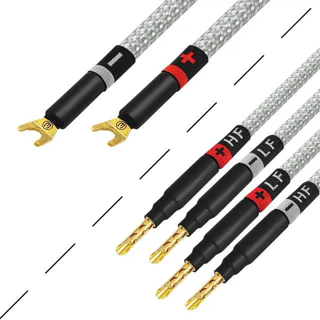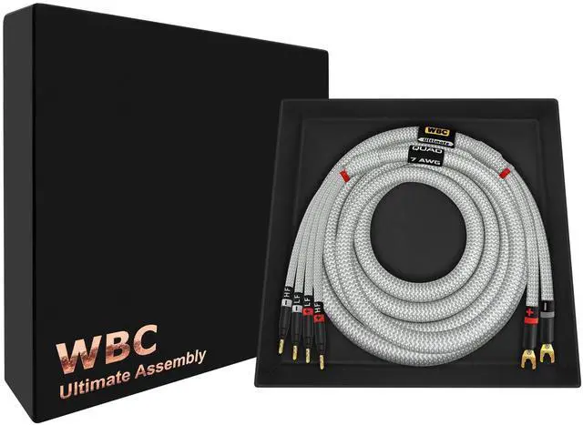 The high-end packaging, makes these a great gift for any Audiophile or Music Lover who will appreciate handcrafted, high quality audio cabling. The braided Tweed cloth jacket and embroidered labeling will compliment your high-end gear quite tastefully; this is truly The Ultimate speaker cable. ^^ At WBC we only use the highest-grade connectors for these audiophile cable assemblies. Eminence 3 micron, 24K Gold plated, audiophile-grade, 4mm (standard diameter) banana plugs with a fully insulated body to prevent accidental shorting & multi-spade connectors, (compatible with 8mm and 6mm binding posts), provide superior abrasion & corrosion resistance and unrivalled performance.