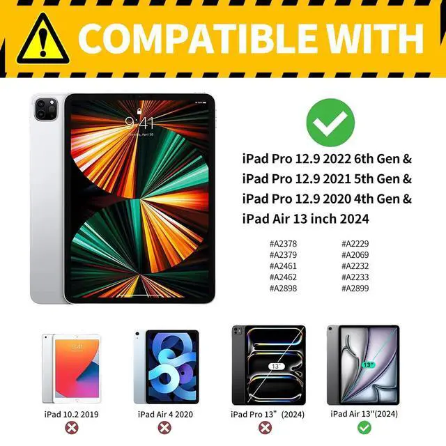 Generation (Model: A2229/A2069/A2232/A2233). It is Not for any other devices. Please check back bottom of your iPad to find the model number ^^ High-Quality Materialfor iPad Air 13 inch Case M2 2024 is made of high quality PU leather exterior and soft tpu lining provides full-body protection against scratches, shocks, drops, and impacts ^^ Adjustable Angles for iPad Pro 12.9" 6th Gen/5th Gen/4th Gen (2022/2021/2020) with multiple viewing angles, to enjoy the most comfortable typing and movie-viewingfreeing your hands for other entertainment activities ^^ Auto Wake/Sleep The magnetic case for iPad Air 13 Inch M2 2024 automatically wakes your device when opened and puts it to sleep when closed. Easy access to all features and controls ^^ Cute Pattern Design A range of striking pattern design available for you to choose, bright and fun pattern colors to protect and decorate your tablet. It is the best gift for women, men, family and friends. Any question, just feel free to contact us