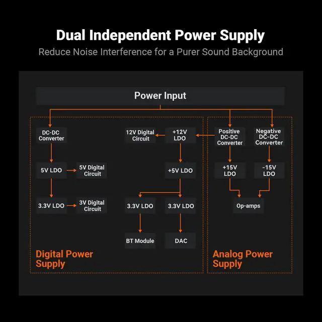 Dedicated Decoding: Equipped with a flagship CS4398 chip for high-res Bluetooth audio. Supporting high-spec 24-bit audio decoding. With a dynamic range of up to 120 dB and THD+N as low as 107 dB, delivering rich detail with minimal distortion and noise ^^ All-in-One