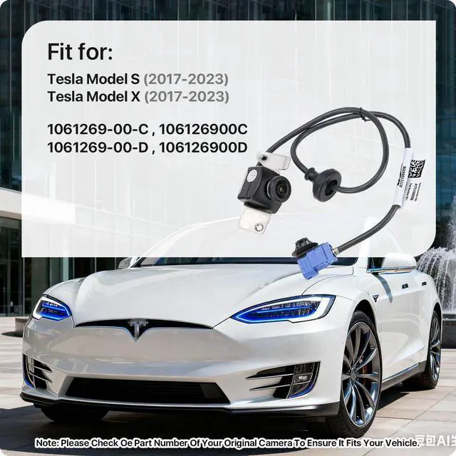 OE part number: 1061269-00-C, 106126900C, 1061269-00-D, 106126900D ^^ Star Night Vision Model X Rear Camera---Experience superior visual clarity day or night with our advanced camera system. Delicate and high-definition images ensure enhanced safety and convenience, providing a superior visual experience in all lighting conditions ^^ IP68 Waterproof Tesla Model S 2017-2023 OE Camera---Built to endure diverse conditions, our camera ensures reliable performance regardless of weather. Whether you're washing the car or navigating heavy rain, rest assured it won't compromise. Crafted with a robust metal housing, it guarantees strength, toughness, high-temperature resistance, sturdiness, durability, wear resistance, and non-deformation, ensuring reliability in any environment ^^ Easy Installation---GreenYi OE 1061269-00-D camera is engineered for seamless integration, serving as a direct replacement for the original backup camera part while supporting coding with the original features. With a plug-and-play mechanism, complex wiring is unnecessary. For added convenience, you can refer to YouTube videos for step-by-step guidance ^^ ATTENTION---Before purchasing this OE camera, check the year/make/model dropdown and OE part numbers to confirm compatibility. Please ask for help from a professional to install it properly.