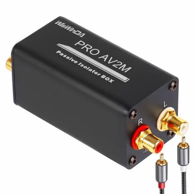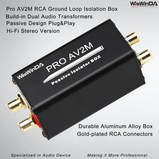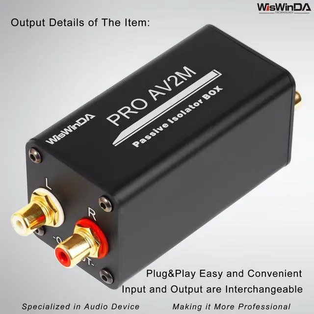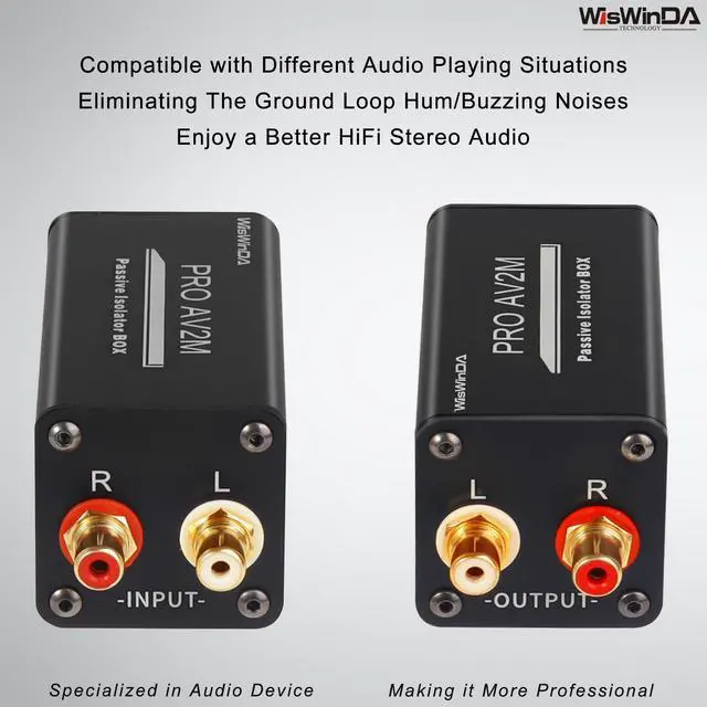 1. WisWinDa Pro AV2M-RCA Ground Loop Isolator/Noise Filter RCA could help you to reduce the noise from the car&home audio electric system, gives you HiFi quality sound output. Perfectly solve car and home stereo hum and buzzing noise problems. ^^ 2. Pro AV2M Hum/Buzz Eliminator box have high quality aluminum shell, sturdy and resist, which has long durability. ^^ 3. Plug&Play Design--The Audio Isolation Transformer Alternator is easy to install, dont need any complicated tools, and it can be used after correct connecting RCA and cable White and Red.