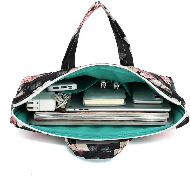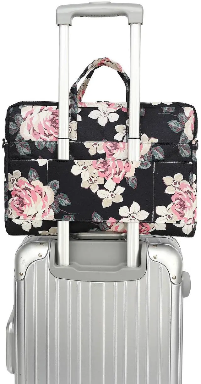 DESIGN: Stylish pink rose pattern laptop briefcase with multiple compartments and pockets for maximum organization ^^