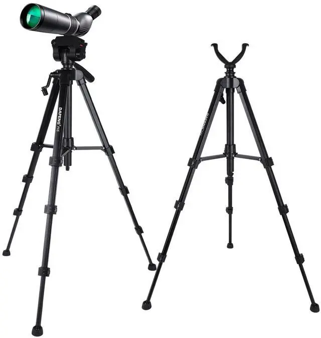 Large Tripod HeadA new large tripod head specifically designed for spotting scope. The increase in size makes the load-bearing stronger, and the quick installation board is fixed with double safety and equipped with precision buckles, making the panel fit more tightly. Including spirit level. Supports 360 degree rotation, pitch shooting, horizontal and side shooting. High quality damping brings a smooth and silky user experience. ^^ Multipurpose and CompatibilityThe package contains a shooting specific rest V Yoke. It can be directly connected to a tripod and used as a rest stand during shooting practice.