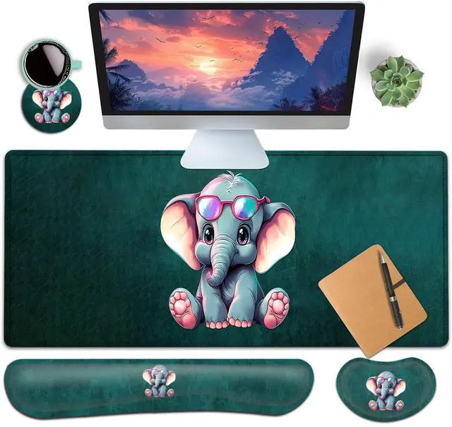 Extended Large SizeThe size of large mouse pad for desk is 31.511. 8inch, which is big enough to fit your full-sized keyboard, mouse, laptop, or other item on the desk, providing more space for professional gaming or office work. Besides, you can also use this extended mouse pad as a desk pad, writing pad, platform protection mat. Keep your desk clean and uncluttered. Ergonomic DesignThe curved and shape design of wrist support set fit perfectly on the wrist. The soft memory foamand filled cushion part will slowly bounce back when your hand leave it, not easy to out of shape.