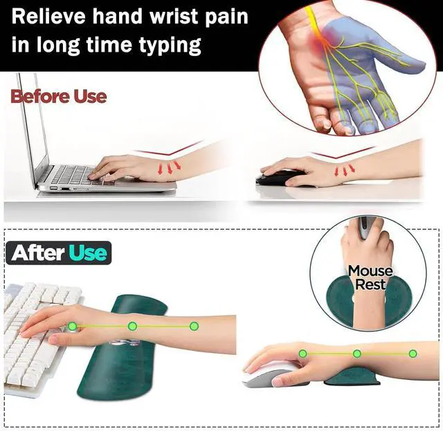 Providing good support to your wrist, maximum relieve wrist stress and tiredness. Ergonomic DesignThe curved and shape design of wrist support set fit perfectly on the wrist. The soft memory foamand filled cushion part will slowly bounce back when your hand leave it, not easy to out of shape. Providing good support to your wrist, maximum relieve wrist stress and tiredness.