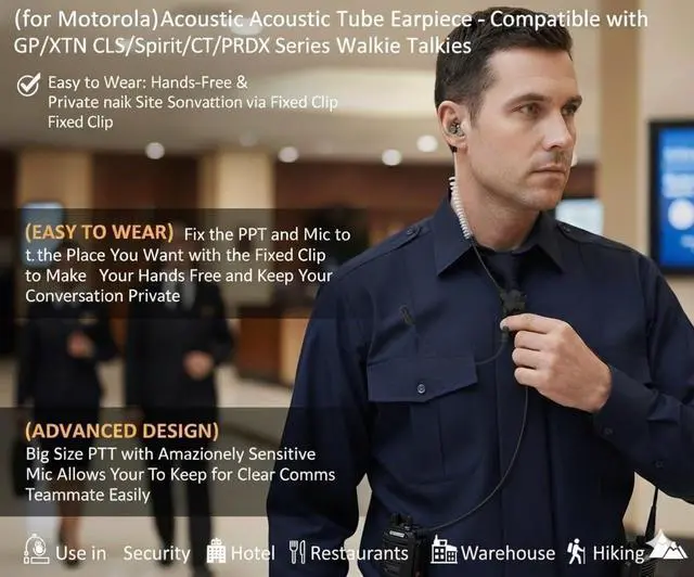 (8pcs Headset for Motorola) Acoustic Tube Earpiece for Motorola and Compatible with GP/XTN/CLS/Spirit/CT/PRO/RDX Series Walkie Talkies ^^ (Easy to Wear) Fix the PPT and Mic to the Place You Want with the Fixed Clip to Make Your Hands Free and Keep Your Conversation Private ^^ (Advanced Design) Big Size PTT with Amazingly Sensitive Mic Allows You to Keep in Touching with Teammate Easily ^^ (Variety of Use) Good to Use in Security Hotel Restaurants Warehouse Supermarket Hiking Hunting Travel Moutains Field and Noisy Environments ^^ (Quality Assurance) 60inch Cable for Earpiece and 40in Cable for Mic and PPTFree Ruturn and Fast Refund in 30 days.
