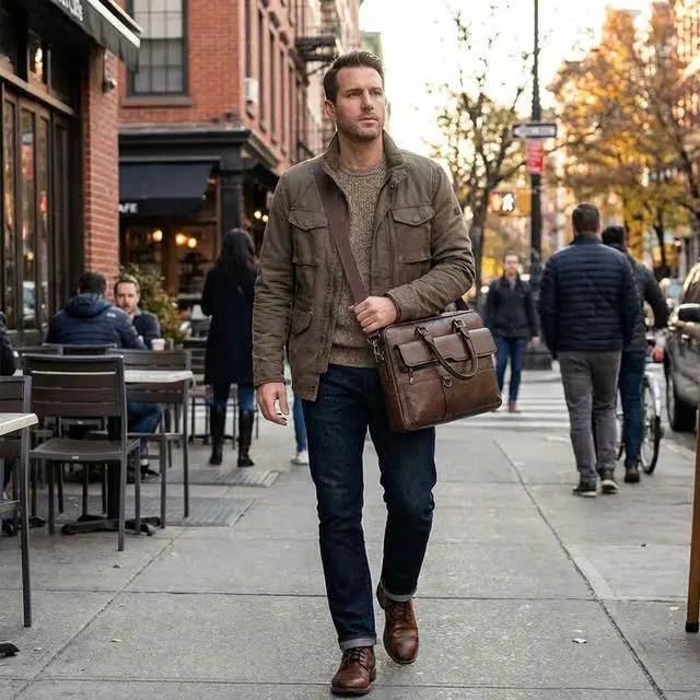 DescriptionElevate your professional presence with this classic leather briefcase that seamlessly blends style and functionality. Designed for the modern businessman, this versatile bag serves as both a handbag and shoulder messenger bag, featuring ample space for your essential work items. The thoughtfully designed interior accommodates laptops up to 15.7 inches, while multiple compartments help organize documents, accessories, and daily necessities. Crafted with attention to detail, this attache case strikes the perfect balance between traditional briefcase aesthetics and contemporary utility. The included shoulder strap offers comfortable carrying options, whether you're heading to important meetings or navigating your daily commute.