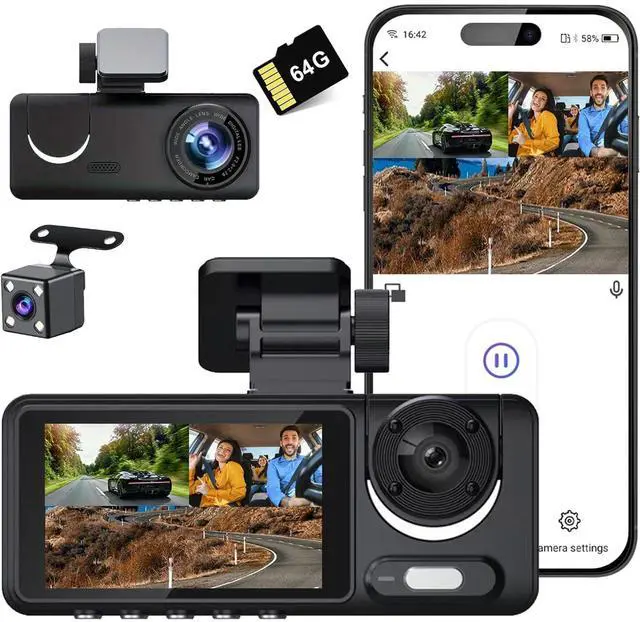 ^^ Sophisticated+Stylish Design & Easy InstallationDash cam adopts a simple and stylish design style, smooth lines, small size and exquisite appearance, will not block the driver's line of sight, ensure driving safety, so that you enjoy a comfortable driving experience. Dash cam are easy to install and set up, that even first-time users don't have to worry about. ^^ Best Cost-Effective & Super After-SalesWe offer you a free 64G SD card, which can meet all your needs and give you the best cost-effective experience. If you have any need, please feel free to contact us.