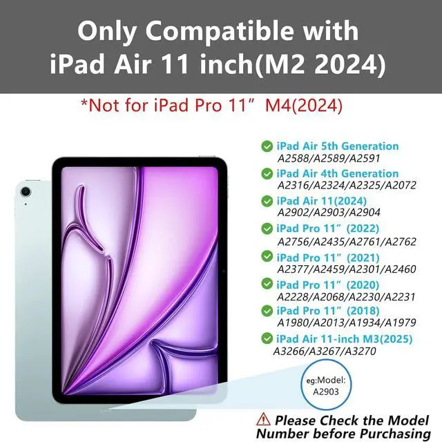[Perfect Compatible] This iPad keyboard case is designed for New iPad Air 11-inch M2 (2024 Release) (A2902/A2903/A2904), 10.9 inch ipad Air 5th generation 2022 released (A2759/A2435/A2761/A2762/A2588/A2589/A2591), ipad Air 4th generation 2020 (A2316/A2324/A2325/A2072), ipad Pro 11 (4th, 3rd, 2nd, 1st Gen 2022/ 2021/2020/2018) (A2377/A2459/A2301/A2460/A2228/A2068/A2230/A2231/A1980/A2013/A1934/A1979), iPad Air 11 Inch M3 2025(A3266/A3267/A3270).