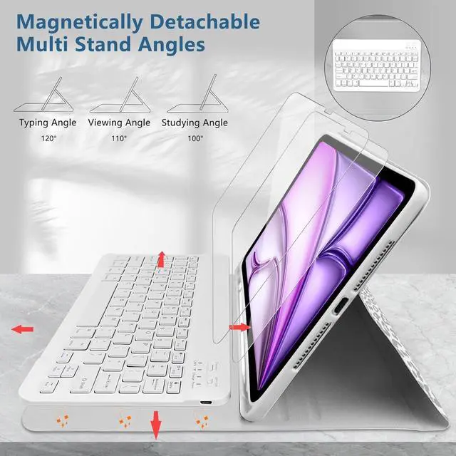 Note: Not compatible with iPad Pro 11-inch (M4) ^^ [Pencil Holder and Multi-angle Adjustable Support] This 10th generation iPad tablet case has a built-in Pencil holder that makes it easy to carry Pencil and take it out. The iPad case has three grooves that can be used at three angles, and is made of non-slip material that supports the iPad to stand up ^^ [Rechargeable Keyboard] The iPad Bluetooth keyboard has a built-in battery with high stability, so you don't need to replace the battery. You can charge the keyboard using the charging cable that comes with the keyboard. The keyboard has a Bluetooth acceptance range of 10 meters. If you don't need to use the keyboard, you can remove it and turn it into a regular iPad case, which makes for a handy experience ^^ [Automatic Sleep/Wake] This iPad case will automatically put your iPad to sleep when you close the front cover of the case. Because an iron keyboard may prevent magnets from attracting to each other, remove the keyboard for optimal sleep/wake up ^^ [Include Content] The box contains the iPad case, 2 Pack 9H Screen Protector, Bluetooth keyboard, keyboard charging cable, and instruction manual.