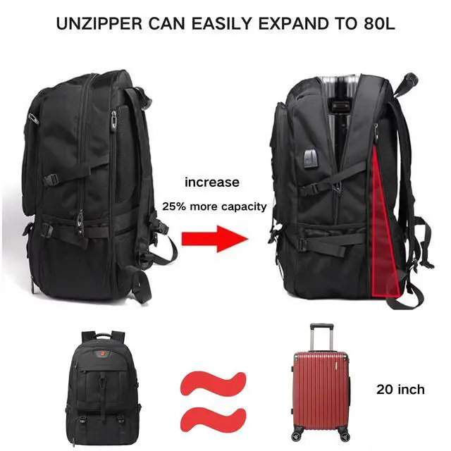 Large CapacityThis versatile travel backpack offers a spacious 50L/80 capacity, making it perfect for carrying clothes, shoes, and tech devices, ideal for travel, gym, or everyday use. ^^ 17/18 Inch Laptop CompartmentSafely store laptops up to 17/18 inches in the padded compartment, making this laptop backpack a great choice for both students and professionals. ^^ Waterproof and Anti-Theft DesignMade with durable, waterproof fabric and equipped with hidden zippers, this waterproof backpack protects your belongings in any weather and guards against theft, perfect for busy city commutes or international trips.