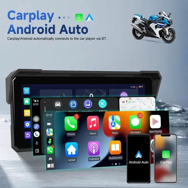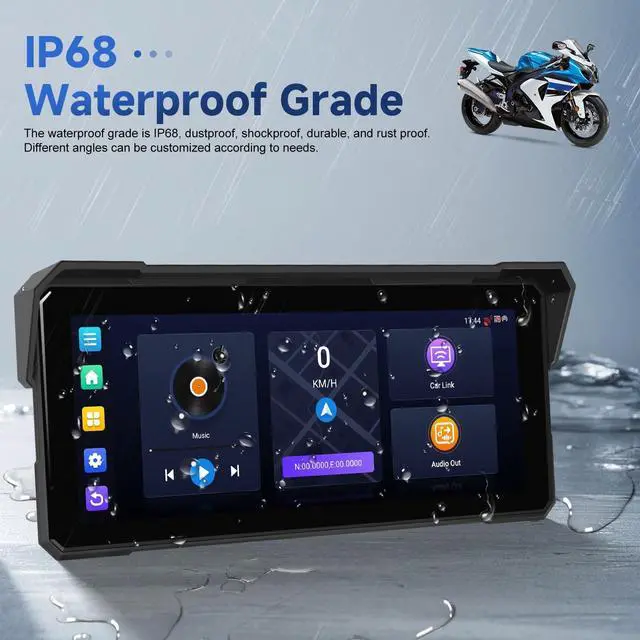 This motorcycle CarPlay screen and Android Auto compatible unit connects instantly to your smartphone, projecting your favorite maps, playlists, and messaging apps directly onto the big screen. Keep your phone securely tucked away while staying fully connected. Its the ultimate wireless Carplay Android Auto solution for riders ^^ IP68 Wide Temp RangeBuilt to withstand the elements, the host boasts an IP68 waterproof rating, defending against dust, dirt, and heavy rain. Coupled with an extreme operating temperature range (-4F to 149F), this motorcycle smart display is engineered for reliability on every journey, from chilly mornings to scorching afternoons ^^ Built-In GPS & Global Language SupportNever lose your way with the integrated GPS navigation function, providing real-time positioning and turn-by-turn guidance.
