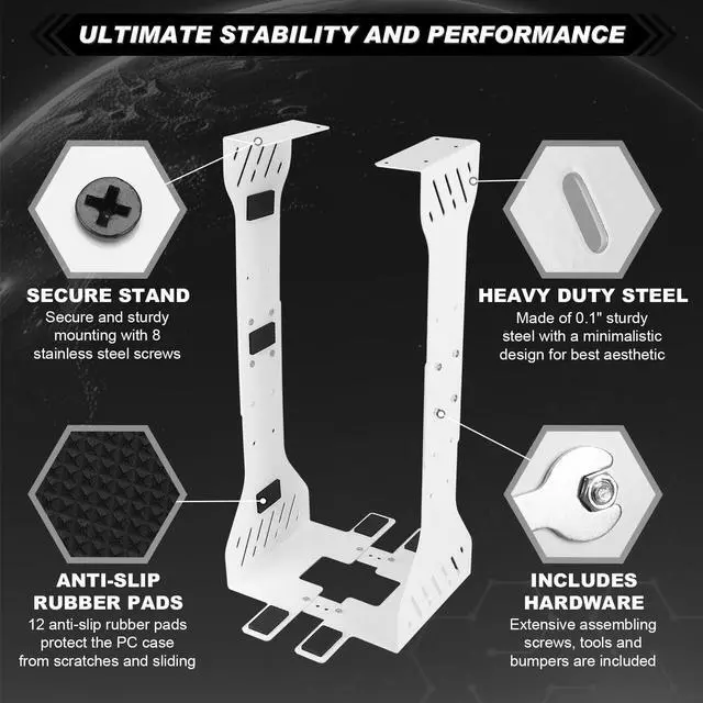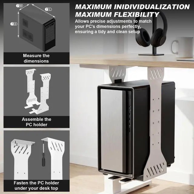 Features: Crafted from solid steel, this PC holder guarantees durability and strength, securely supporting your computer under the desk. Its sturdy build ensures long-lasting use, providing peace of mind and protecting your investment. With a white color, the under desk PC holder seamlessly blends with various decor styles, adding a touch of modern elegance to your office. Its minimalist design not only complements your workspace but also enhances the overall aesthetic appeal.