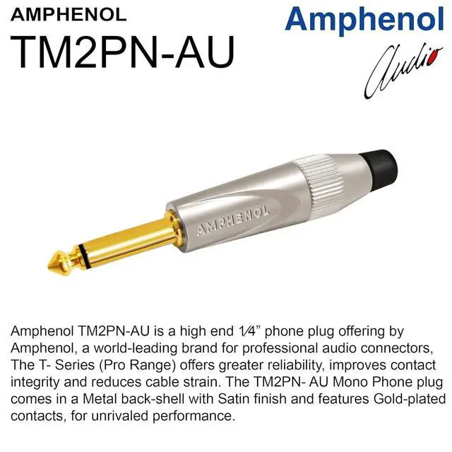 These high-value, high-quality cables will not break your bank and the integrity of your creative process. With WBC-PRO you are buying a product made with love and the utmost care for quality. WBC-PRO, the only cable you will ever need! ^^ These Heavy-duty Road-ready T-Series (Pro Range) Inch TS plugs are made by Amphenol, an almost 100-year-old US company. TM1RN-AU (Silent Right-angled) uses a unique contact design to quietly switch the instruments under load, thereby avoiding annoying thumps, pops and squeals. This & TM2PN-AU (straight) both sport Satin-finish robust diecast metal shells, precision machined Gold-plated contacts & offer greater reliability, improved contact integrity and reduced cable strain.