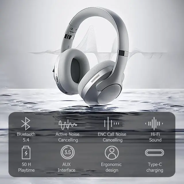 Low-profile luxury appearance, -54dB industry noise cancelling benchmark, leading the trend of noise cancelling headphonesFeatures: 1, -54dB industry-leading noise reduction technology2, 50 hours of ultra-long battery life. 3, Cinema-quality surround sound. 4, Dual sound absorption and sound leakage technology. 5, 5-microphone ENC call noise cancellation. 6, Professional acoustic HiFi sound quality.
