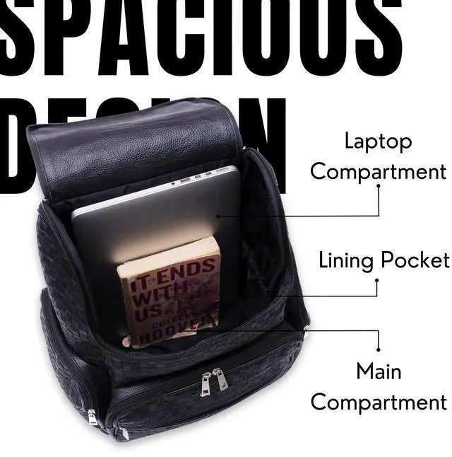 • Made from high-quality genuine cowhide leather, this leather laptop backpack is scratch-resistant, soft to the touch, and built to last. The woven leather texture adds a unique, handcrafted look, making it a fashionable yet functional accessory.