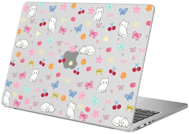 Exquisite Kitten Bow Design: The transparent laptop shell perfectly matches laptop in various colors, and the cute kawaii kitten bow star butterfly pattern design is fashionable and simple ^^ Easy Installation and