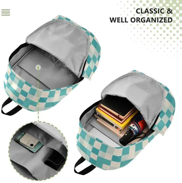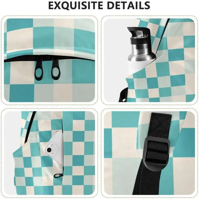ALAZA Turquoise Plaid Geometric Backpack Laptop Notebook Bag College Bag Bookbag Casual Travel Trip Daypack for Women Men Fits 15.6 Laptop