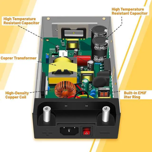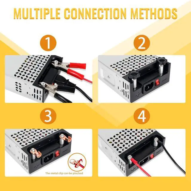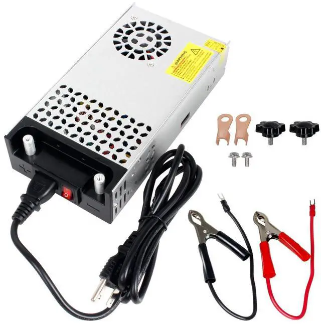 Powemperature: -10+60 ^^ Safe and StableThe AC to DC converter 12V has overload, overvoltage protect, leakage protect and short circuit protect. All-copper nickel-plated terminal material has good electrical conductivity and high conversion efficiency, corrosion resistance, aging resistance, and a power converter that is not limited by time and space. The red button switch function provides a safer and more convenient power on/off operation. 360w converter power supply, power cord and plug have passed UL, CE, RoHS certification. ^^ How To ApplyPower supply Converter come with power cord, 12v converter with switch, wire lugs, metal clip and screw. Super convenient for devices with clamps. You can clamp to the two cylindrical contacts directly. The peak power is 30A, 360W. It does not mean 12v power supply can fit rate power 360W. For motor device, the start current will be much higher that rate power. If use resistive equipment, such like led strips, you can use higher power, such like 40A rated leds will also be OK. ^^ Wide ApplicationThis ac to dc converter Widely used in most 12V device, such as 12V diesel heater, radio, broadcasting, LED display, LED Strip Light, CCTV Camera System, 3D Printer, Car Stereos, PCP Compressor etc.