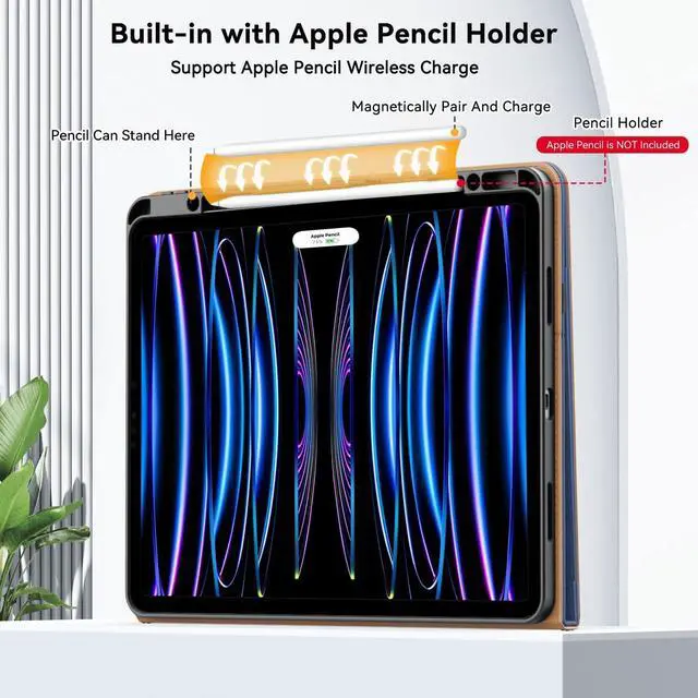Apple Pencil Holder: Zonefoker leather folio pro case has a built-in holder for your 2nd gen Apple Pencil to ensure it never gets lost and support the pen wireless charging (Apple Pencil is NOT included) ^^