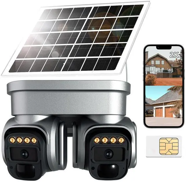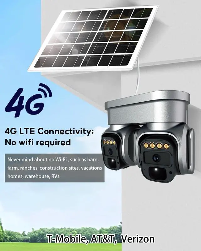 LTE Connectivity: No wifi required, enjoy reliable wireless security without the hassle of Wi-Fi installation, built-in SIM card that enables seamless 4G LTE connection. Never mind about no Wi-Fi, such as barn, farm, ranches, construction sites, vacations homes, warehouse, RVs. (The included SIM card supports major carriers like T-Mobile, AT&T, and Verizon. Enjoy flexible data plans with options starting at $ 14.99 /month, $ 39.99 /quarter, or $ 149.99 /year. Plus, get a 7-day free trial to experience the service before committing. ) ^^ Dual Lens & 360
