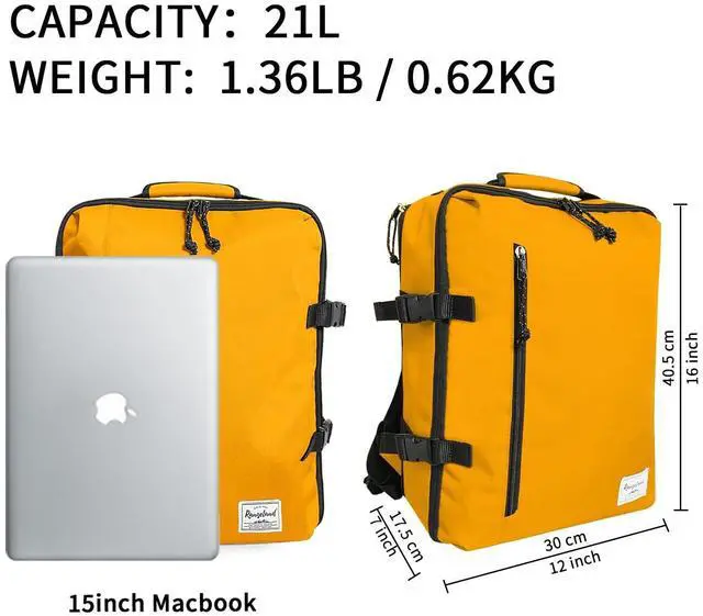 PERSONAL ITEM BACKPACK Flight approved travel backpack opens like a suitcase small but spacious and lightweight. Backpack fits under airplane seat for most airlines like Allegiant or Ryanair. With splendid features make traveler walk through airport much easier, a padded grab-and-go handle, a convenient luggage trolley strap, backpack with separate laptop compartment making it easier to take out for security checkpoint ^^ LARGE CAPACITY AND PRACTICAL This rectangle front-loading backpack measures 12 x 16 x 7 inches that maximizes all the storage space, featuring a vertical zipper pocket for in-flight essentials, a quick-access top pocket to organize smaller items, zip compartment on the back of backpack for MacBook Pro 16-inch.