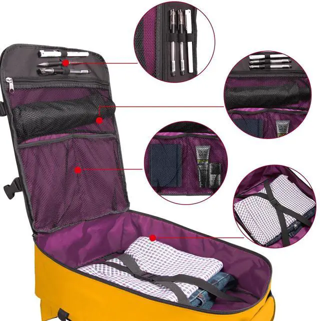 The interior is bright color, making it easier to see everything, built-in internal elastic clothes holding straps; 3 mesh pockets to keep travel accessories handy and visible ^^ DURABLE AND COMFORTABLE Made of sturdy and scratch-resistant polyester. 4 compression straps squish the load closer to your back, these useful buckle straps can also secure the zipper; to fit more gear and even holding your rolled jacket to free-your-hands. Padded ergonomic shoulder straps and breathable mesh back padding fit snugly to ensure comfort on-the-go ^^ GREAT GIFT IDEAS Tired of searching for a simple, casual yet stylish backpack for your next trip? Search no more, because we have the minimalist perfect size carry-on bag ideal for making your trips less stressful and more exciting.