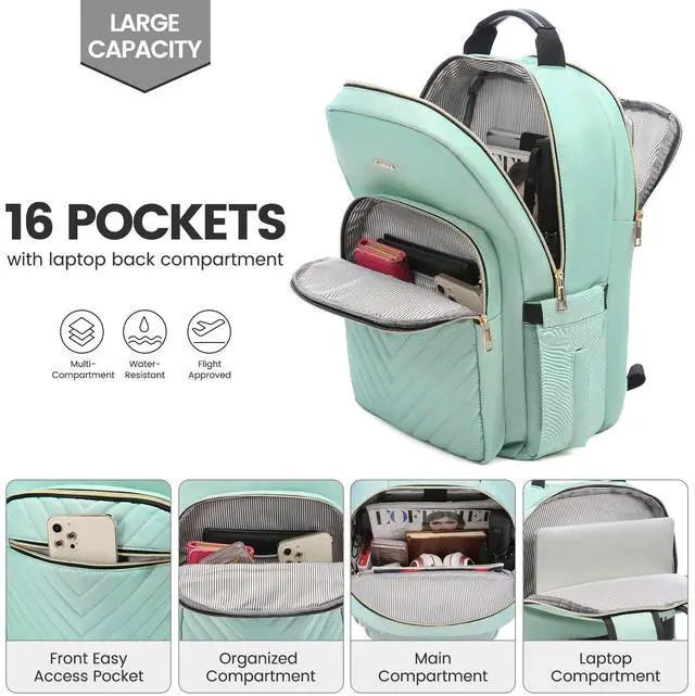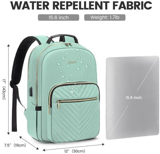 Upgraded Laptop Backpack Women: Classic V-shaped embroidery thread. Upgraded double LOVEVOOK no-slip metal zippers, water resistant Nylon fabric with polyester lining, ensures long lasting usage. Total of 4 compartments and 16 pockets for your computer, A4 folder, bottles, umbrellas, clothes, work supplies, college supplies and travel essentials.