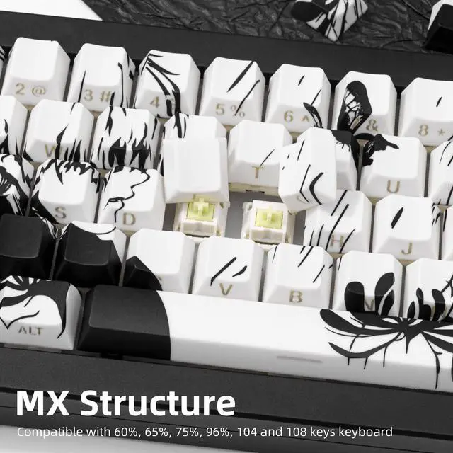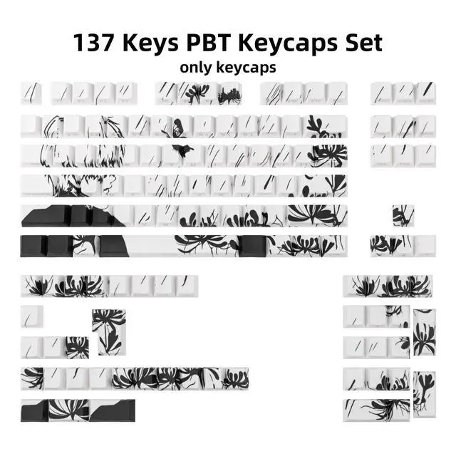 Backlit Keycaps: JOLINTAL White Japanese Anime keycap set is designed with side printing, which allows light to shine through the keycaps and effectively enhances the RGB lighting effect of the gaming keyboard. 2. Durable PBT MaterialTextured PBT construction resists wear, oils, and fading. Maintains matte finish and tactile feel longer than ABS keycaps. No shiny spots even after years of use. 3.