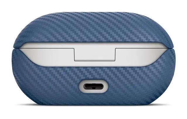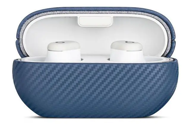 Haobobro Leather Case - for Beats Solo Buds Case Cover - Selected Skin-Friendly Leather, with Carbon Fibre Texture, Handmade Shockproof Protective Hard Cover for Beats Solo Buds 2024 - Blue
