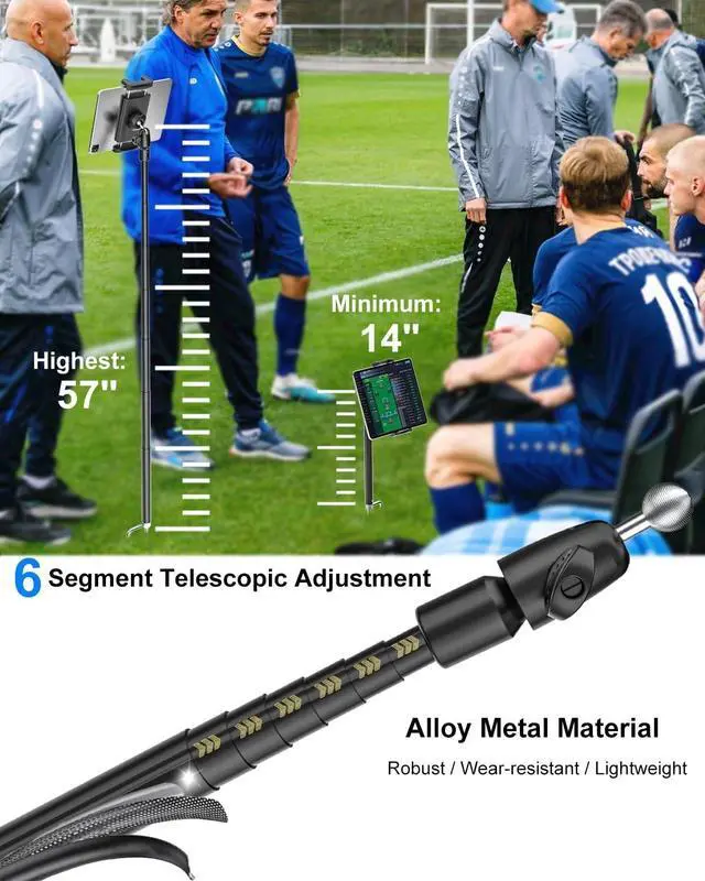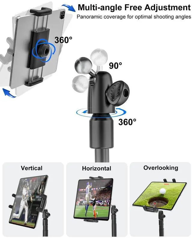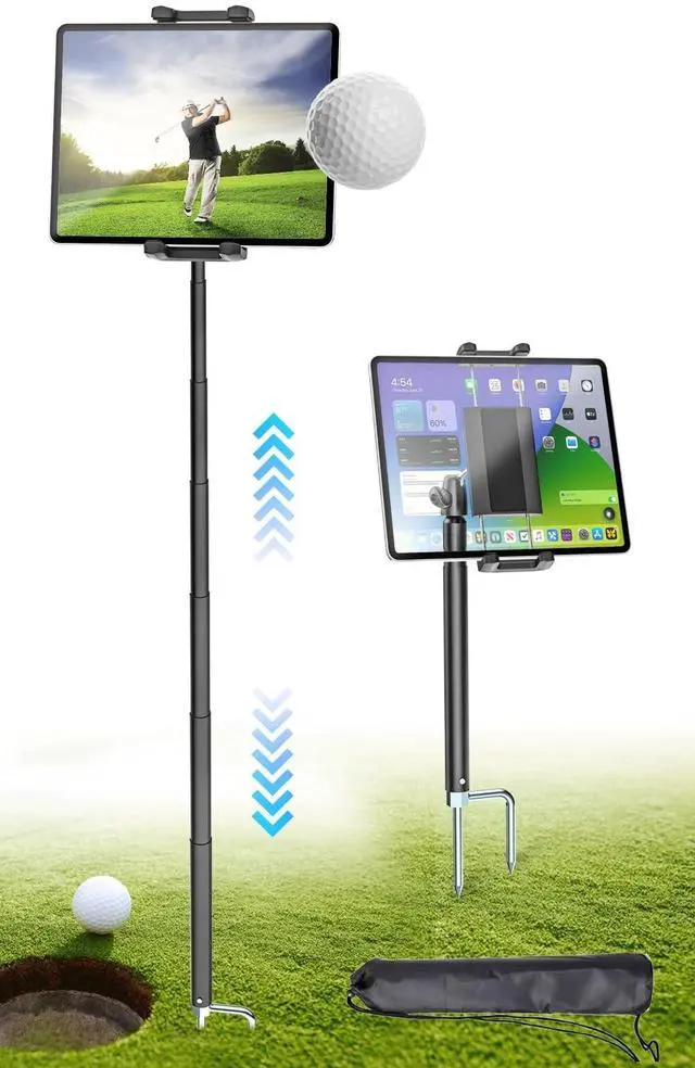 or watching tutorial lessons and data ^^ Widely ApplicableMonopod for iphone The Ground Spike Stake is made of heavy-duty metal and is extremely strong, making it ideal for use on grass/sand/mud. Can be used on golf courses, baseball diamonds, rugby fields, soccer fields and other outdoor venues during training, competition and instruction ^^ CompatibleThe Golf Swing Analyzer Holder supports 4-13" mobile phones and tablets, whether it is iPad Pro 12.9, Air, Mini, iPhone 16, 15, 14, Android or other brands, it can be easily adapted.