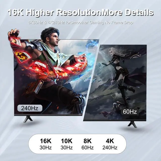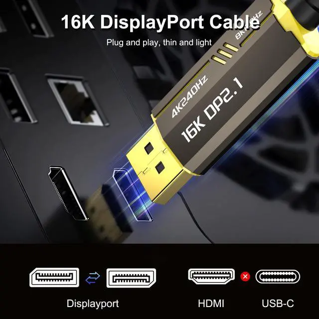 Upgrade Your Gaming Experience: Display Port Cable 2.1 Experience vivid, lifelike colors, enhanced contrast, and realism with Dynamic HDR support, also supports UHBR10, DSC 1.2 a, 3D, HDR, FEC, and FreeSync necessary for gaming G-Sync, flicker-free gaming, especially in FPS, 3A masterpieces and MOBA games ^^ Wide compatibilityCompatible with Odyssey G8/G9, Ben Q, Dell, LG, HP, ASUS, Acer, iiyama monitors, etc., and can also be used with RTX 3090/4090/5090, RX 6800/6900, Geforce GTX 980/1080, ASUS HD 7970, HD Graphics 4600 and other popular graphics cards work seamlessly together. Supports DP, DP++, DisplayPort++ and G-Sync, Free-Sync, Adaptive-Sync. For use with graphics cards and monitors with Displayport ports. Backwards compatible with DP 2.0, DP 1.4, DP 1.3, DP 1.2, DP 1.1, DP 1.0 versions