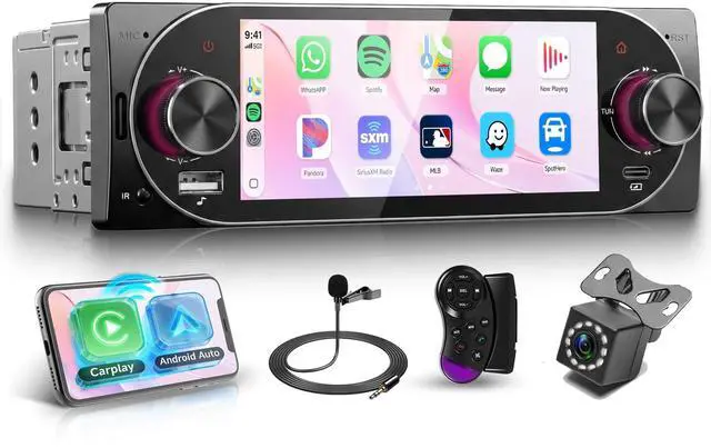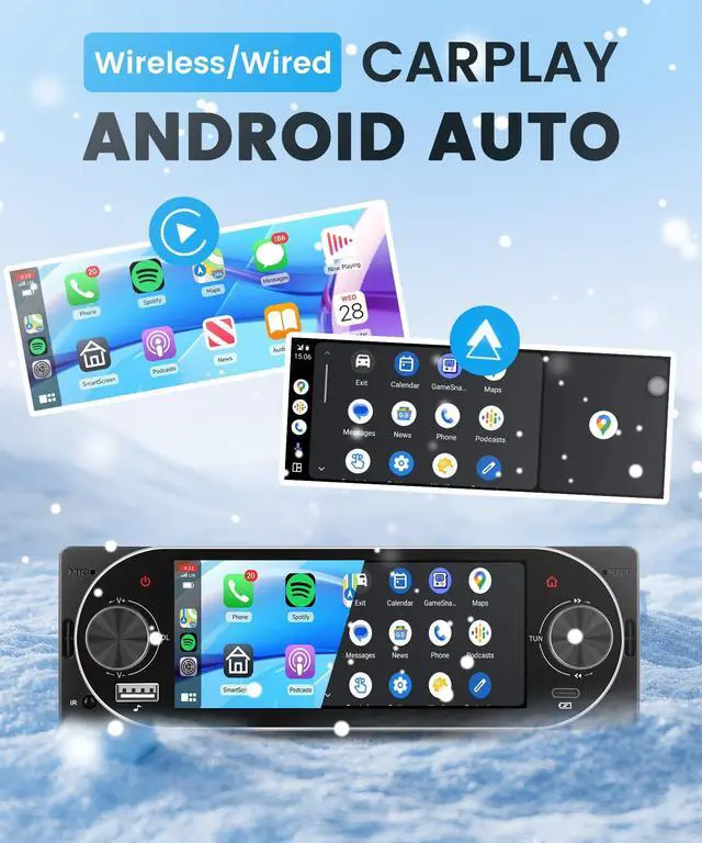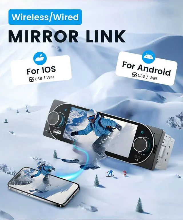 Mirror Link: This single din car stereo supports seamless wireless CarPlay & Android Auto connection, letting you access your phones contacts, navigation, music, videos, and notifications via voice or touch control for safer, distraction-free driving. It also features Android/iOS mirror link functionsync your phone screen to the 5.1 inch touch screen car radio with ease, and enjoy all mobile apps directly on this single din car audio receiver without extra adapters. ^^ Bluetooth 5.2, FM/RDS