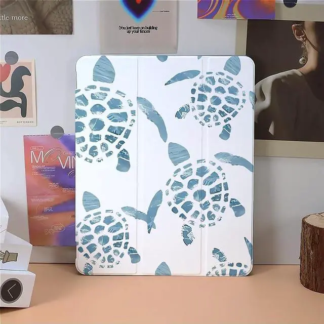 Green Sea Turtles Case Compatible with iPad 9th 8th 7th Generation 10.9 Inch 2021/2019/2018,Funny Cover with Trifold Stand + Pencil Holder for Boys Girls,iPad 10.9in 2022
