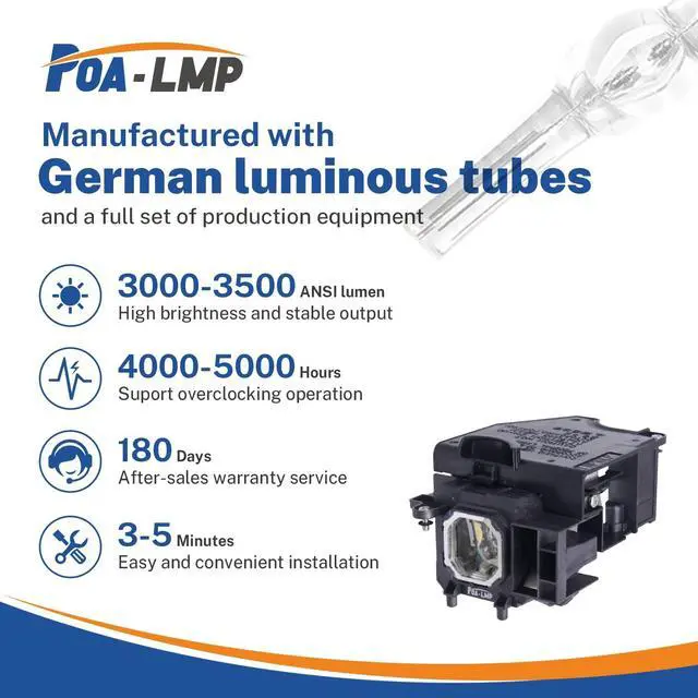 ^^ We have been specialized in projector lamps solutions for more than 15 years, and we are aimed to provide customers with high brightness, long lamp life, stable light output and accurately matching POA-LMP replacement lamps. ^^ POA-LMP lamps use German luminous tubes and precision coated reflectors, bring you ultra high brightness and definition; And every lamp from POA-LMP has been strictly tested before shipment, and it is easy to install it into your projector.