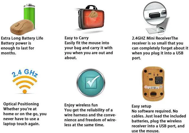 Package List: 1 x Mouse1 x Receiver1 x Charging Cable1 x Instruction Manual