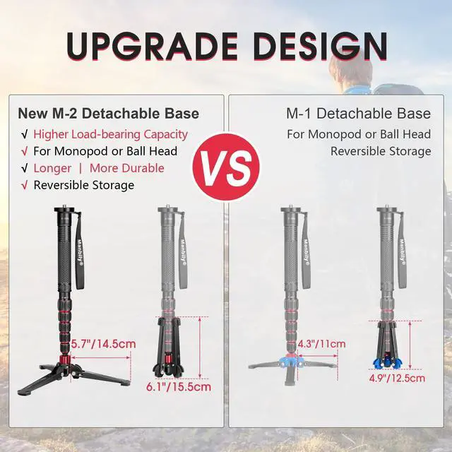 Leg Base: The Manbily tripod base (with a foot length of 5.7" ) has a larger foot size, higher stability, and higher quality. Anti-slip pads have been added to the bottom of three feet to enhance the stability of the base ^^ Universal 3/8"
