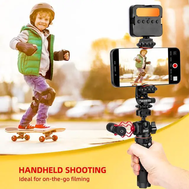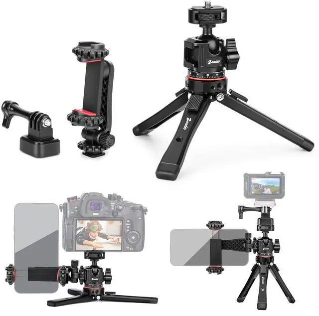 Versatile All-in-One SolutionFeatures phone stand for recording & action cam adapter. Perfect compact phone vlogging kit for iPhone/Android, cameras, gimbals, Action Cams, and smartphones. Shoot stable videos anywhere! Universal CompatibilityEquipped with a 360 rotating ball head and 1/4-inch screw adapter, it easily connects to all camera tripods, camera stands, gimbals, and action cameras, while the cold shoe mount allows for additional accessories like microphones or lights. Heavy-Duty Metal Construction DesignBuilt with full metal materials, this tripod supports a maximum load of 40kg, and the ball head holds up to 10kg, ensuring exceptional stability and durability for heavy equipment in rugged conditions.