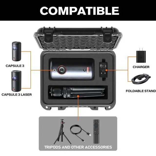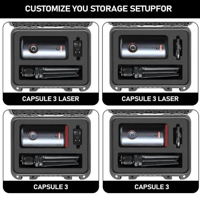 Capsule Series & Tripod Stand]: Precisely designed for Capsule 3, Capsule 3 Laser, adapter, remote control, cables, and tripod stand. Ideal for home theater lovers, travelers, and presentation users who want everything organized in one place ^^ [Waterproof & Hard