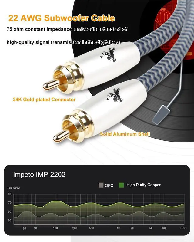 High-Performance Subwoofer RCA Cable: Crafted with high-purity copper conductors and double-braided metal shielding, the IMP-2202 RCA Cable delivers superior audio/video signal transmission compared to traditional cables. Enjoy stable, uncompressed signals with zero electromagnetic interference or radiation, resulting in naturally clear, immersive stereo sound. ^^ Premium Build for