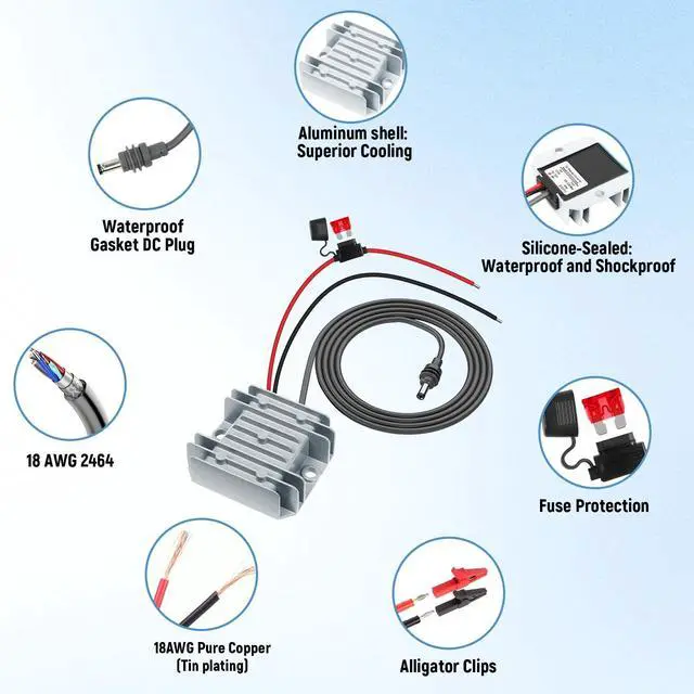 • Safe & Durable Aluminum Housing: The starlink mini 12v power adapter built-in fuse offers protection against overcurrent and short circuits. This starlink mini 12v to 24v dc step up converter has rugged aluminum casing ensures efficient heat dissipation and long-lasting durability in extreme conditions. IP68 waterprrof, ideal for outdoor use