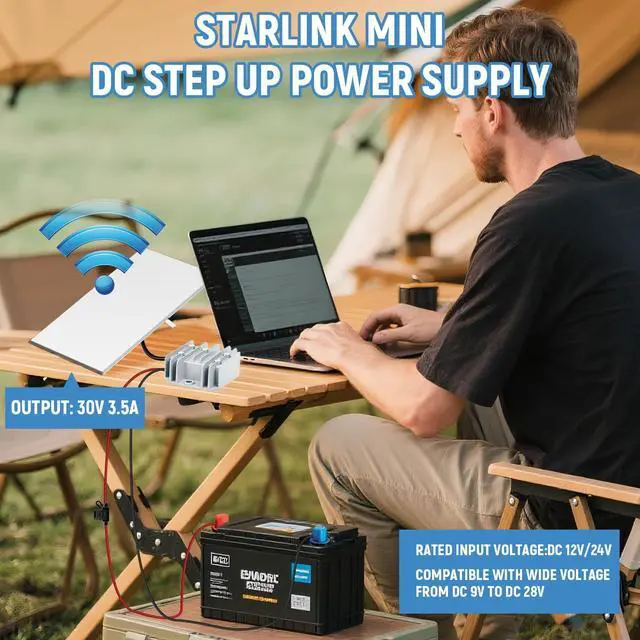 • Stable Starlink Mini battery boost converter: DC step up power cable 12V/24V to 30V3.5A converter, providing reliable power for your Starlink Mini off-grid satellite internet. Compatible for input DC 9V-28V to output 30V