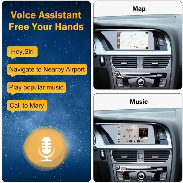 Pre-shopping NotesOnly compatible with Concert or Symphony radios. Our wireless Carplay module is suitable for Audi S4 S5 A4 A5 models from 2009 to 2015 with the 2G MMI system. Please check our website picture to make sure your car is compatible with our item. If you aren't sure whether this retrofit module works with your car, please contact us and send the picture of center control panels to us. ^^ Support Wireless/Wired Carplay & Android AutoSupport Wireless Or wired Connection way depends on your phone type. Our unit can work with Siri/ Maps/ Music/ Phone Call.