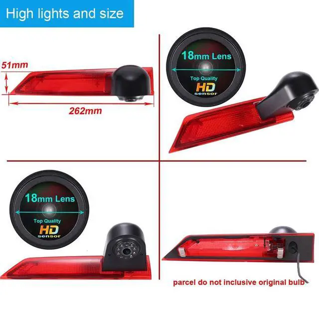 Image Quality: 1280 * 720 pixels 1000TV lines. Brake light camera brake light reversing camera. This rear view camera uses high-resolution sensors and lenses to provide clear and detailed images that help you accurately determine the situation behind your vehicle.