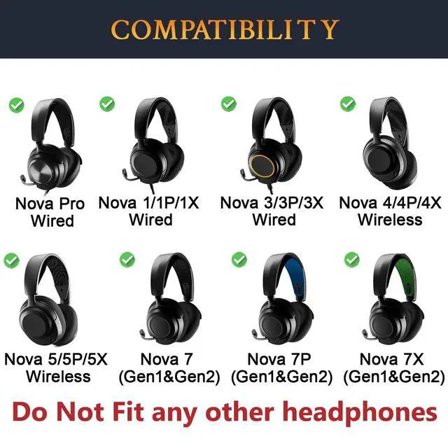 Perfect Fit: Our replacement ear pads are specifically designed to perfectly fit your Arctis Nova Pro Wired, Nova 1/1X/1P/3/3P/3X/4/4P/4X/5/5P/5X/7/7X/7P Headphones. Before making a purchase, please make sure to confirm your headset's model to ensure compatibility.